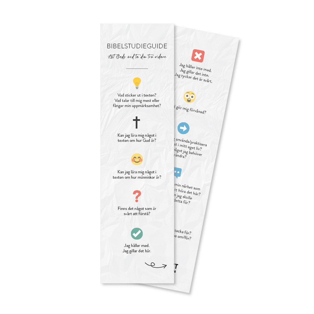 Guiden består av 10 frågor, är i bokmärkesformat och passar perfekt att förvara i din Bibel.